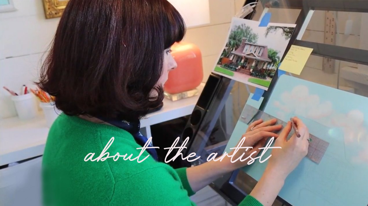 Rebekah Eugenia Lazaridis is a multidisciplinary artist behind @homeillustrations where she creates customized home portraits with a nostalgic flair. She graduated with a BFA from The School of The Art Institute of Chicago in 2005. Rebekah worked for many years in Florida as a professional scenic artist for theatre and as an apprentice in New York City with USA829, painting in teams for Broadway, live television and large films. Her first NYC solo exhibit, Broken Legs, opened at The Sheen Center in NoHo in 2015.